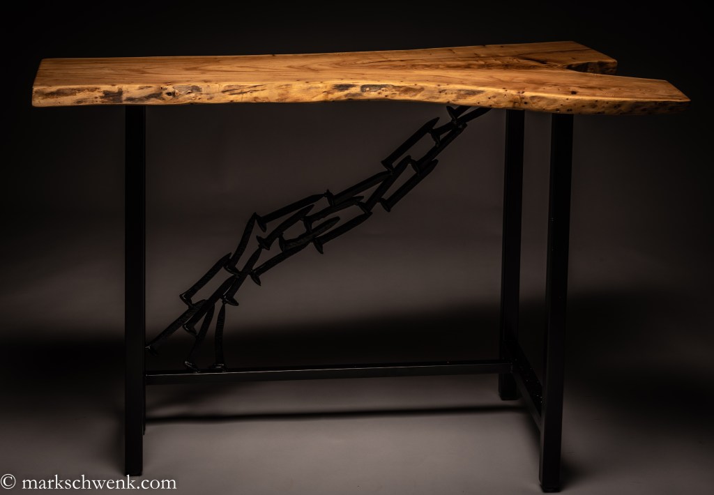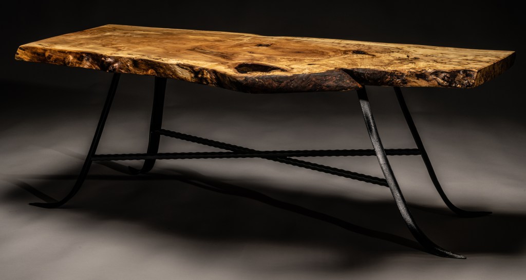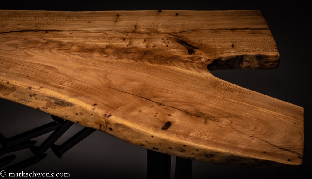 Cheryl and Mark choose unique wood from local sources- Catalpa, Black Walnut, Pecan, Osage Orange and many more. Each board is chosen for it’s character, whether its going to be a table or a charcuterie board. Tables and furniture get their own unique metal bases. Click here for our Charcuterie and Butter Boards
